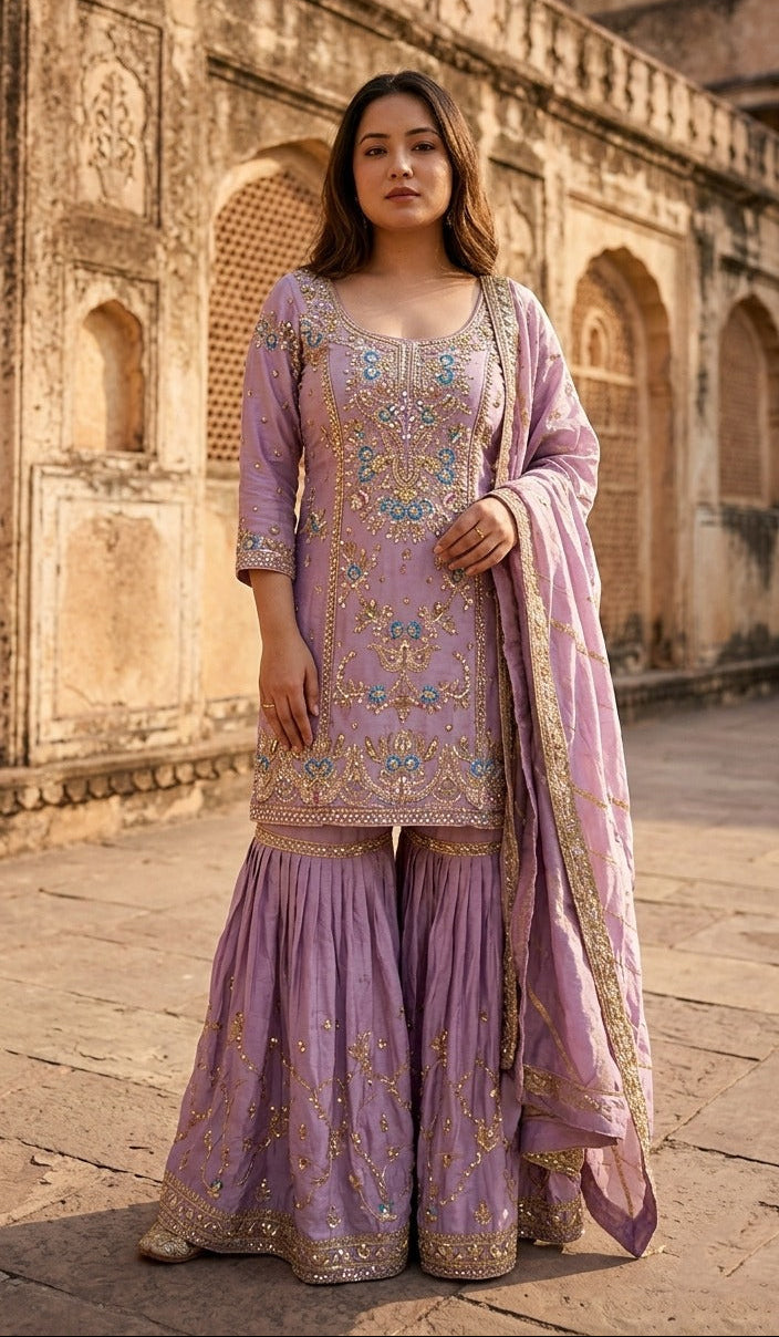 ELEGANT MAUVE WITH WHITE SHERWANI AND KURTA WITH TROUSER