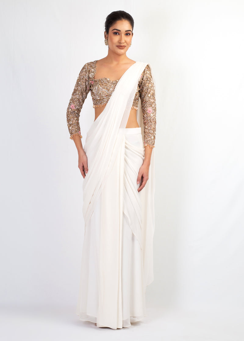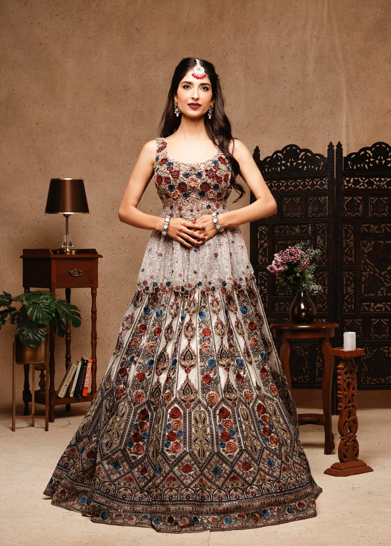 NUDE EMBROIDERY PEPLUM AND SHARARA WITH DUPTTA