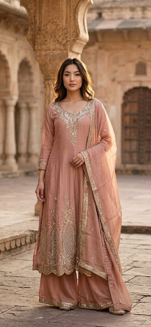 PEACH EMBROIDERY LEHENGA WITH ELEGANT TOP AND DUPATTA